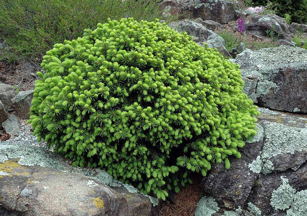Взрослое растение в диаметре достигает 1 м, а в высоту не превышает 0,4 м. Небольшие, плотные побеги формируют округлую крону в виде подушки. Хвоя короткая, тонкая, зеленовато-голубого оттенка. Крупномер обыкновенная Echiniformis хорошо приживается как на солнечных участках, так и в полутени. Не терпит засухи, лучше растет на увлажненных почвах. семена спокойно реагируют на обрезку, для придания аккуратной формы нужно время от времени удалять отдельные вертикальные побеги.