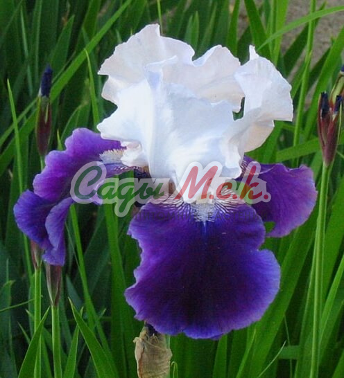 Рассада ириса Calypso Beat позволяет получить крупные цветы с классической контрастной окраской. Этот высокий цветок, мощные цветоносы которого достигают в высоту 97 см. Нижние доли (фолы) парящие, насыщенного малиново-фиолетового цвета с белой центральной линией. Верхние доли (стандарты) – чисто белые, закрытые. Бородка – желтая или лимонная. Лепестки - гофрированные, волнистые. Цветение происходит в поздние сроки. Цветок выразительный с четким делением на цвета.