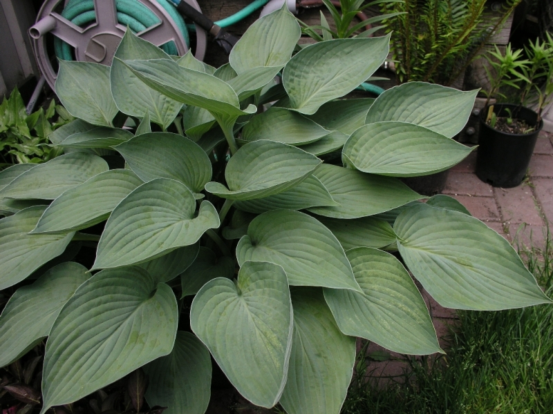 Хоста Hyacinthia. Листья гладкие, сердцевидные, глубокого серо-зеленого цвета, снизу голубые, цветки бледно-лавандовые. Цветки до 4 - 5 см длиной. Растение 60 см высотой. Цветет в июле, августе. Хоста неприхотлива, хорошо растет практически на любых садовых почвах, но предпочитают почву, заправленную перепревшим навозом или компостом.