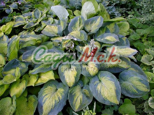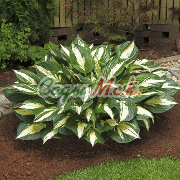 Хоста гибридная Велвет Мун хорошо приживается на новом месте и весной дает обилие молодой поросли, которая быстро формирует красивый куст с высотой около 60 сантиметров. Один из немногих сортов, листва которого устойчива к солнцу, оттенки не выгорают под воздействием солнечных лучей. Достаточно крупные листья обладают основным темно-зеленым оттенком и имеют очень широкую золотисто-желтую кайму. Цветет растение в июле бледно-лавандовыми цветками. Хоста гибридная Велвет Мун эффектно будет смотреться в ландшафтных композициях с разными растениями ― хвойными, декоративнолистными или цветущими.
