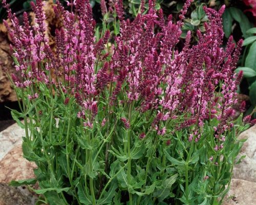 Цветки: розовые; собраны в колосовидные соцветия на прямостоячих цветоносах. Шалфей дубравный rosea - отличный медонос.